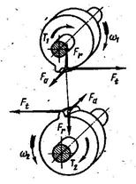 В косозубых передачах кроме окружной и радиальной силы возникает еще и осевая составляющая сил Fа