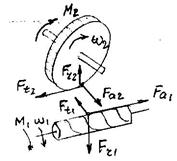 Ft1 = Fa2 = 2M1 / d1 = 2M2 / u∙ η∙ d1, (8.16)