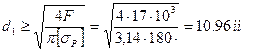 Внутренний диаметр d 1 резьбы болта, определяется из условия прочности на растяжение
