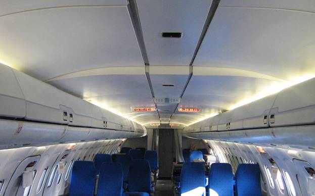 Вместимость переднего сливного бака для переднего туалета 120л. Вместимость заднего для двух задних туалетов 280л. В полете, использованная вода из раковин центрального Б-К и раковин задних туалетов сливается за борт самолета.