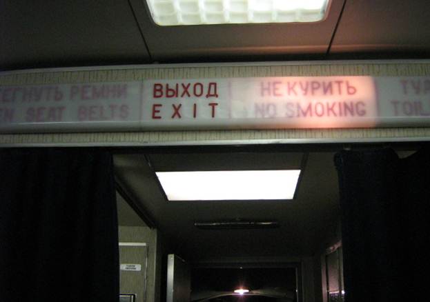 - ТУАЛЕТ ЗАНЯТ над входом в туалет и на перегородках.