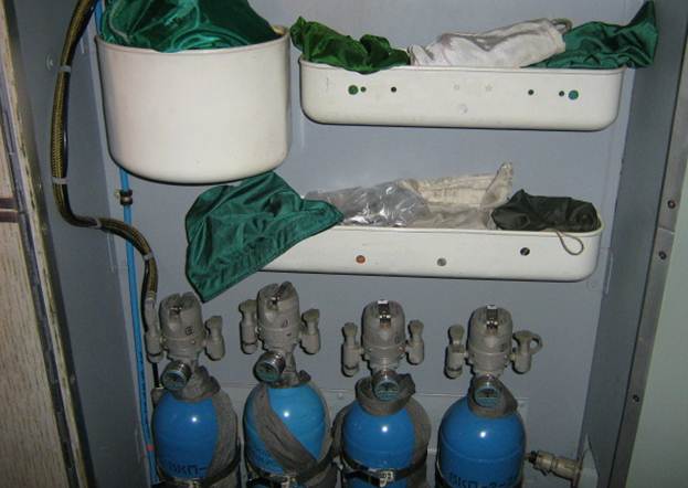 АКБ-17-2 Аварийный кислородный блок (двухмасочный).в туалетах, у БП.