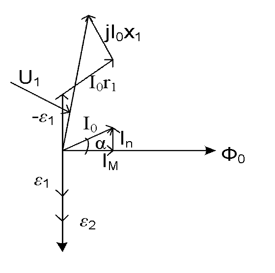 Угол α между I0 и Ф0 – называется углом магнитного запаздывания и характеризует активные потери в стали. Чем больше α, тем больше активные потери в стали.