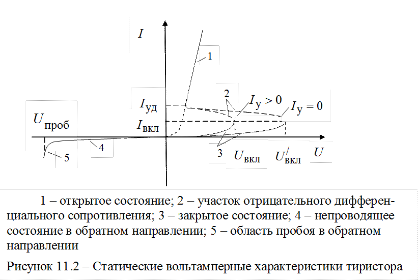 Если I < Iуд, то при снятии управляющего сигнала тиристор возвращается в закрытое состояние.