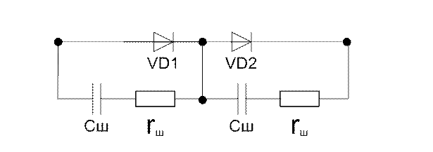 Rш – шунтирующее сопротивление, необходимое для выравнивания U на вентиле.