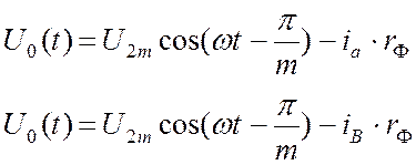 ток в нагрузке изменяется по косинусоидальному закону. В фазе, закончив работу, - линейно спадает, а в фазе, начинающей работу, - линейно возрастает.