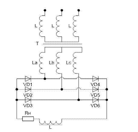 Трехфазный выпрямитель работает на L-нагрузку, так как это обеспечивает минимальные требования к габаритной мощности трансформатора и наименьшие требованиям к вентилям.
