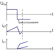 Транзисторы поочередно в режиме насыщения. Из насыщения в режим отсечки нельзя перейти мгновенно.