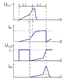 Затем подаем отпирающий импульс на VD2: VD2 открывается, а к VD1 приложено напряжение на С: Uc = 2·Еп, VD1 закроется и ток потечет через W12, конденсатор перезарядится. Когда VD1 откроется, процедура повторится.