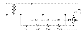 Каждый последующий каскад увеличивает суммарное напряжение на Um: ∆U= Um. По сравнению с предыдущей схемой данная схема обладает меньшим Rвых, следовательно, больше токи на выходе. Недостаток схемы – каждый последующий конденсатор должен быть рассчитан на большее напряжение: Uвых. макс.=n·Um, где n – число каскадов умножения.