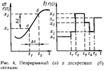 называют непрерывными и дискретными. К непрерывным относят сигналы, которые описываются непрерывной функцией времени f (t) и имеют бесконечное множество значений (рис. 4,а), причем соседние значения могут различаться на ничтожно малую величину.
