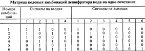 При этом на всех других выходах будет сигнал 0. Все входные и выходные комбинации сведены в табл.