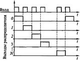 Распределителем импульсов называется устройство, которое распределяет поступающую на его вход серию импульсов по независимым выходным цепям. При наличии у распределителя N выходов он преобразует временную последовательность импульсов (последовательный единичный код) в код
