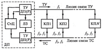 При наличии сдвоенных КП для ТС используется два самостоятельных частотных канала с частотами f2 и f3. Устройство имеет общий для всех пунктов полукомплект ТУ ДП(Р) (для
