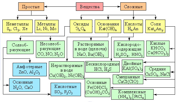 На рис. 8 приведены важнейшие классы неорганических соединений.