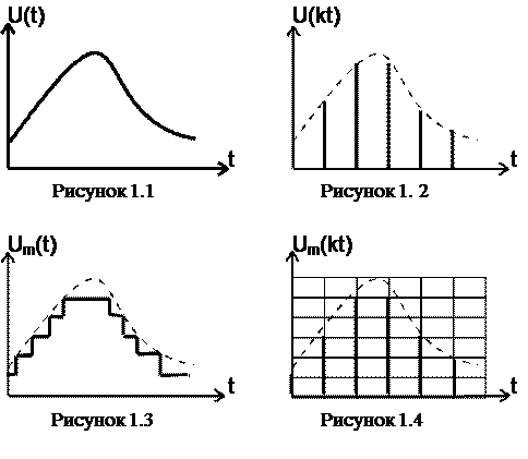3. Дискретная функция непрерывного аргумента. Например, функция времени, квантованная по уровню Um(t), где m=0, 1, 2, …, M, M – возможное число уровней (рисунок 1.3).