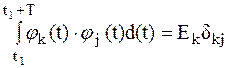 В общем случае функции jk(t), k=0, 1, 2, …, заданные на интервале t1 £ t £ t1+T, называют ортогональными на этом интервале, если выполняется условие