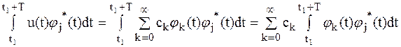 Коэффициенты ряда (1.1) находятся следующим образом. Умножим обе части равенства (1) на jj*(t) и проинтегрируем на интервале (t1, t1+T)