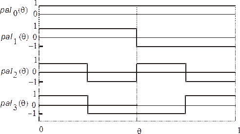 . На рисунке 2.2 приведены первые четыре функции Уолша, упорядоченные по Пэли.