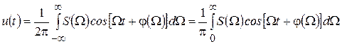 Непериодический сигнал u (t), определяемый выражением (4.4) через спектральную характеристику S (j Ω), можно представить в тригонометрической форме. Используя выражение (4.12) и преобразование комплексной экспоненты по формуле Эйлера, получим