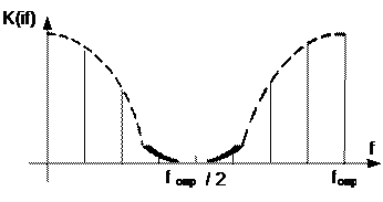 В соответствии со свойствами дискретного преобразования Фурье АЧХ цифрового фильтра периодична с периодом, равным частоте опроса f опр, и симметрична относительно частот mf опр /2, где m=1, 2, …(рисунок 10.4).