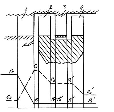 1- сопловой аппарат; 2 - рабочая решетка первой ступени скорости; 3 – направляющий аппарат; 4- рабочая решетка второй ступени скорости.