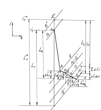 Ступени скорости выполняют обычно чисто активными. Однако, с целью снижения потерь энергии в межлопаточных каналах турбинных решеток, большая часть располагаемой энергии преобразуется в соплах, а остаток распределяется между рабочими решетками и направляющими аппаратом. Рабочий процесс турбины с двумя ступенями скорости в Si - диаграмме представлен на рис.6. Если располагаемая работа на турбину L0, а располагаемые работы решеток