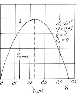 . На рис.7. представлена эта зависимость для турбины с двумя ступенями скорости. Оптимальное значение g1 можно определить по формуле
