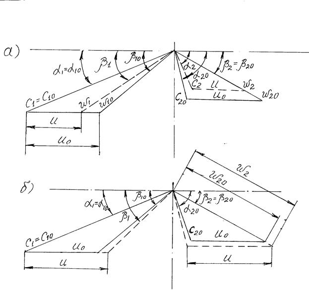рис. 11. Треугольники скоростей при изменении режима: