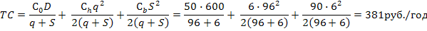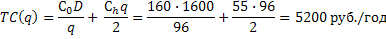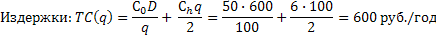 Издержки ТС = подача заявок + хранение + штраф за дефицит =