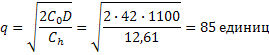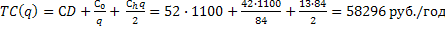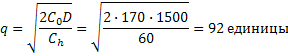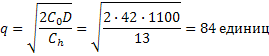 Так как годовая стоимость хранения одной единицы составляет 25% ее цены, то Сh=0,25*52=13руб./ единицу.