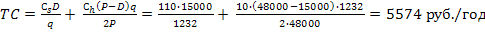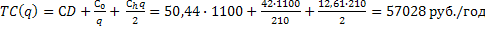 Издержки ТС = стоимость организации технологического процесса + хранение =
