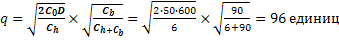 Где q- оптимальный размер заказа, S –максимальный размер дефицита,