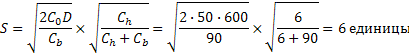 Пример 6. Годовой спрос D=600 единиц, стоимость подачи заказов С0=50 рублей/заказ, издержки хранения одной единицы Сh=6 рублей в год, годовая стоимость отсутствия запасов