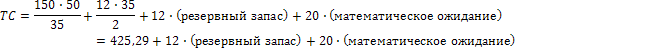 Издержки ТС= 424,29 + 12*(резервный запас) + 20*(математическое ожидание) = 424,29 + 44,6 = 468,89 руб./год.