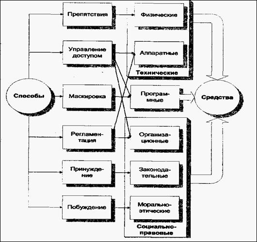 Под защитой информации в компьютерных системах будем понимать создание и поддержание организованной совокупности средств, способов, методов и мероприятий, предназначенных для предупреждения искажения, уничтожения и несанкционированного использования информации, хранимой и обрабатываемой в электронном виде (рис.2.9).