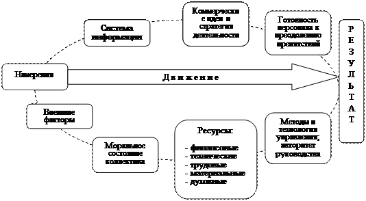 Процесс управления предприятием (организацией), имеет целью получения прибыли. Движение от поставленных целей к результату является многоступенчатым. Он требует оперативной коррекции первичного плана действий в зависимости от достигнутых промежуточных результатов. В целом конечный успех предприятия зависит от многих факторов, часть из которых не поддается строгой формализации (рис. 4.2).