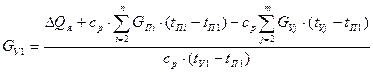 Решая это уравнение относительно GУ1,находят требуемую производительность вытяжной системы общеобменной вентиляции по избыткам явного тепла, кг/ч