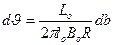 . Определим компоненту скорости вдоль оси Х в произвольной точке пространства перед щелью. Считаем, что линии тока образующегося течения направлены по кратчайшему пути к всасывающей щели. Разделим всасывающую щель на бесконечно тонкие полоски длиной, равной длине щели, и шириной db. Одна из таких полосок находится на расстоянии «в» от начала координат, которое совпадает с центром щели. Через элемент щели площадью dblо будет отсасываться элементарный объем воздуха dL = dblo