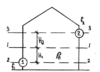 Для расчета естественного воздухообмена в цехе под действием гравитационных сил следует пользоваться таким правилом: внутреннее избыточное давление по направлению вверх от любой горизонтальной плоскости увеличивается, а по направлению вниз — уменьшается на величину