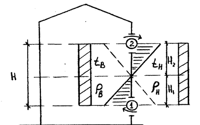 Определим положение нейтральной плоскости. Допустим, что на H1 м от центра первого отверстия внутреннее избыточное давление равно нулю: тогда в плоскости центра этого отверстия внутреннее избыточное давление равно: