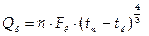 — температуры нагретой поверхности и воздуха в помещении, оС.