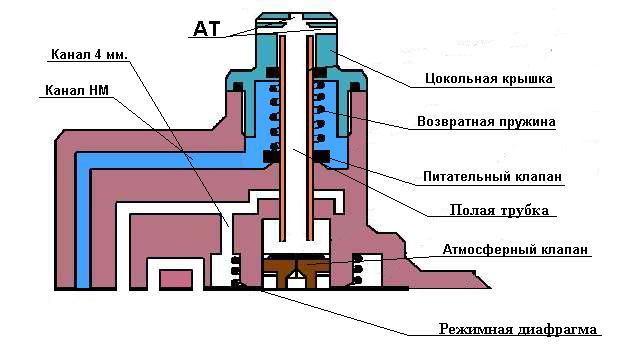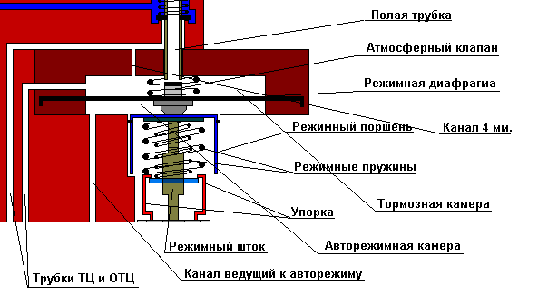 - Авторежимная камера. Камера под режимной диафрагмой. По каналу сообщается с авторежимом (камерой под диафрагмой пневмореле).