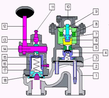 При срабатывании срывного клапана и разрядке ТМ в атмосферу, начинается движение сжатого воздуха по коленообразному каналу (слева на право), что приводит к размыканию электрических контактов УАВА, схема управления разбирается. Для дальнейшего движения необходимо вручную восстановить толкатель УАВА в первоначальное (нижнее) положение, после закрытия срывного клапана.