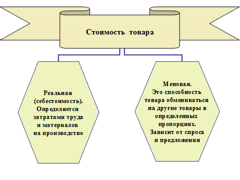 Товар обладает двумя принципиальными свойствами — потребительной стоимостью и стоимостью меновой рис. 4.3.