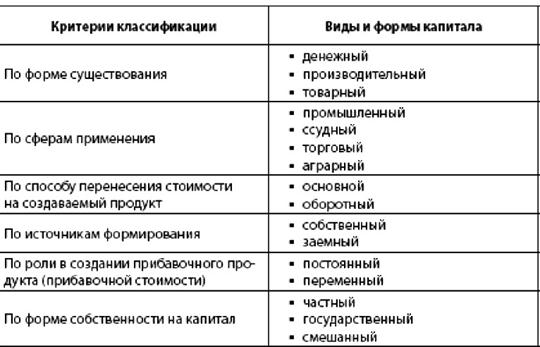 Рассмотрим виды капитала: