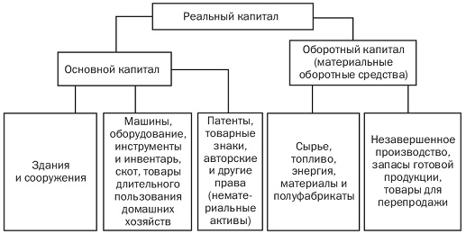 Реальный капитал (реальные активы, нефинансовые активы) делится на основной и оборотный капитал (рис. 7.3). К основному капиталу обычно относят имущество, служащее больше одного года. В России основной капитал называют основными фондами.