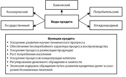 Формой движения ссудного капитала является кредит. На схеме 9.6 показаны виды кредита. Различают коммерческий, банковский, потребительский, государственный, международный кредит.