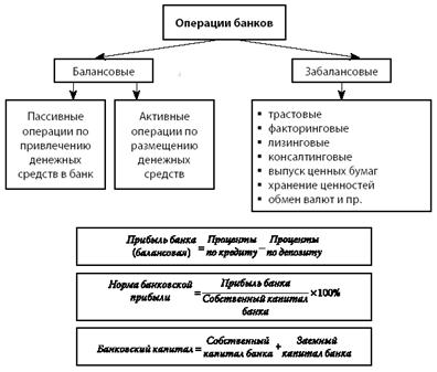 Операции, выполняемые банками, делят на балансовые и забалансовые рис. 9.8. Балансовые операции отражаются в балансе предприятия и состоят из активных и пассивных операций.