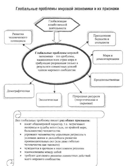Интернационализация хозяйственных и научно-технических связей привело к возрастанию глобальных проблем человеческой цивилизации. К ним относятся прежде всего проблемы военной угрозы, малоразвитость значительной части мира, продовольственный, энергетический и др. кризисы. Они оказывают воздействие на структуру мирового и национального воспроизводства, динамику экономических процессов.